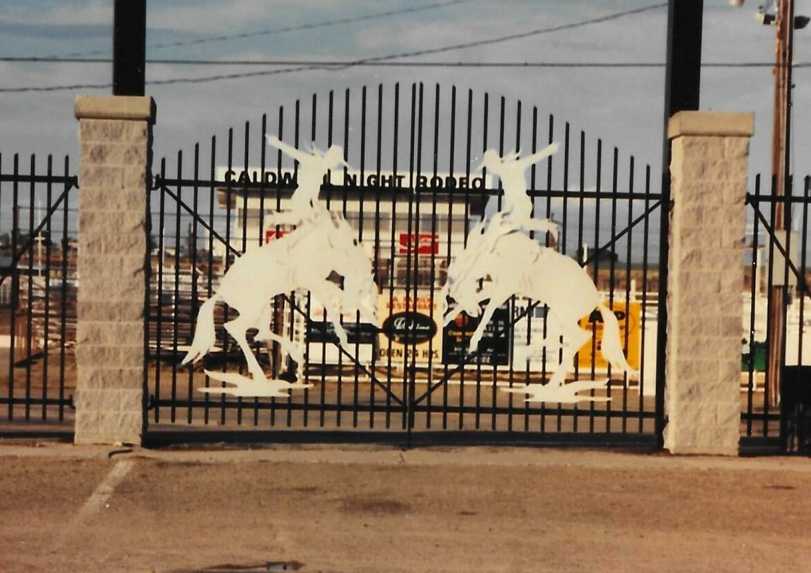 The metal sculptures on the gate of the entryway to the Caldwell Night Rodeo have been a familiar sight to fans and those who pass by for over a quarter of a century. The matching set of broncs and riders is an emblem of the Western Heritage and traditional rodeo that is the CNR. For designer and metal sculptor, Elden Waltman (a lifelong resident of Caldwell), they brought a special sense of pride. The sculptures were a collaborative effort between Waltman and another Caldwell resident and metal sculptor, Bob Gerdes.
